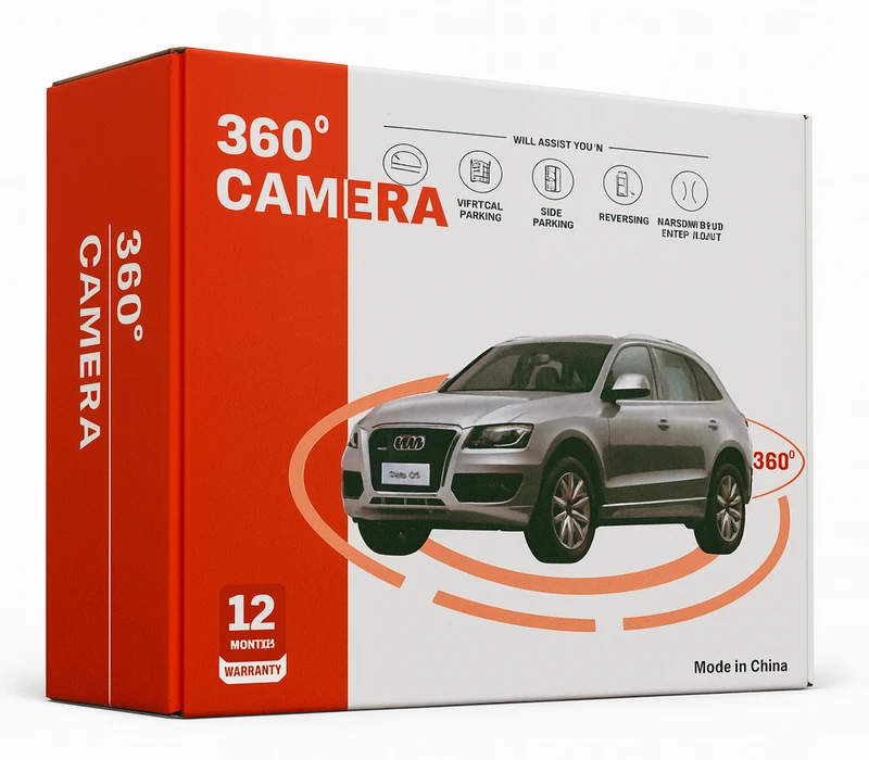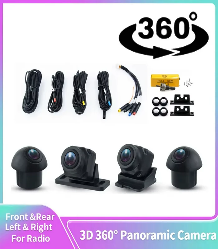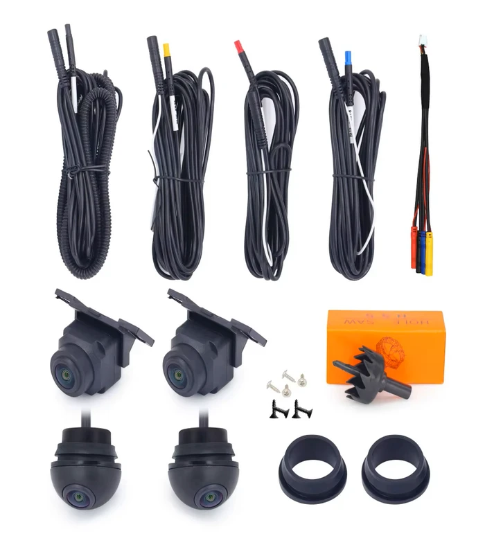 طقم كاميرات 360° عالي الدقة يغطي السيارة بالكامل بأربع كاميرات أمامية وخلفية وجانبية، رؤية بانورامية لسهولة الركن والمناورة، مقاوم للماء مع رؤية ليلية واضحة.