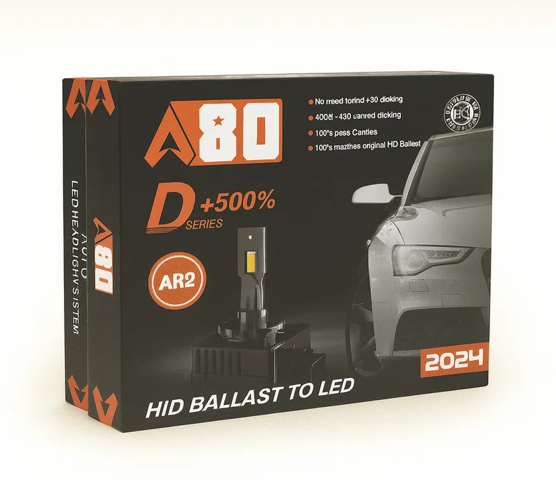 لمبات A80 HID Ballast to LED للسيارات، قوة إضاءة جبارة +500%، عمر طويل حتى 50,000 ساعة، تبريد مثالي وتصميم متوافق مع جميع السيارات. 🌟